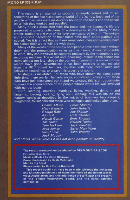 Blagrove. The record was released to tie in with a BBC documentary 'The Narrow Boat Men'.