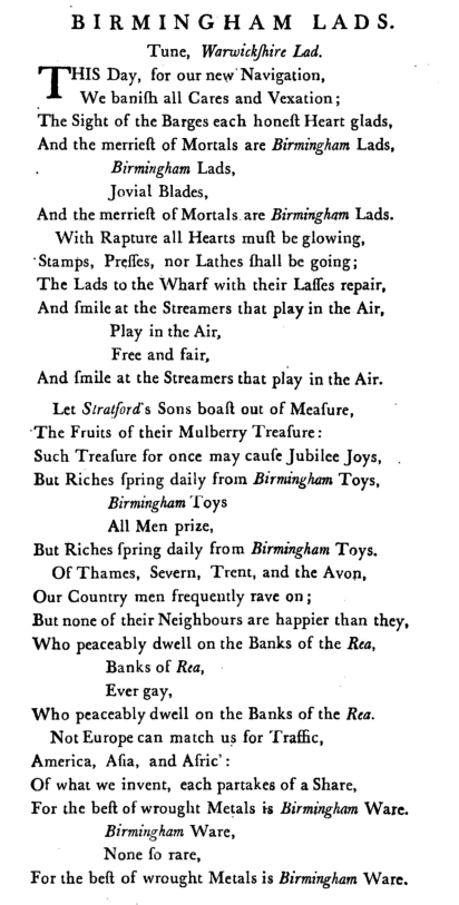 He composed this song for the opening of the Birmingham Canal in 1769 using Charles Dibdin's tune for 'The