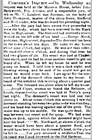 between Hull and Sheffield. He met a watery end in 1834 when, after