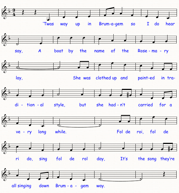 [F]Fol-de-rol, [C]fol-de-ri-do, [Dm]sing fol-de-rol-[E7]day,