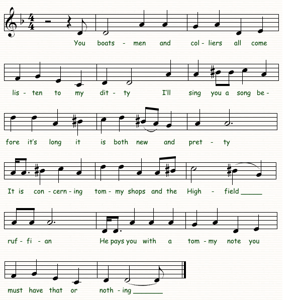 century and, perhaps as a consequence, we have few songs from the canal people. The Tommy Note is currently the only full